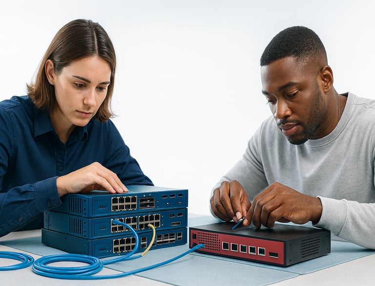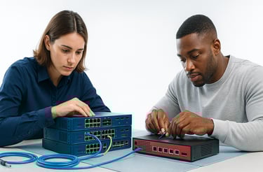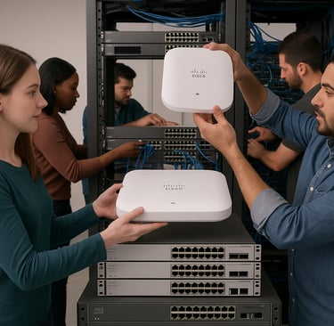 Professional installation of high-performance Wi-Fi 6/7 networks using Cisco and Fortinet equipment for reliable, secure connectivity.